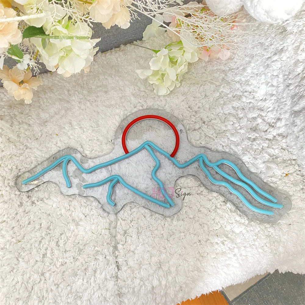 - Scenic Mountain & Sun Design: A minimalist neon outline that brings a peaceful, natural vibe to any room.